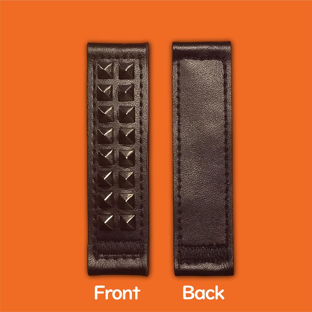 Der Teil des Sockels, der die Noppen stützt, ist von einer echten Lederschlaufe umgeben. Beim Gebrauch berührt nur der echte Lederteil, der angenehm ist, die Haut.ハンモッ君 mit Fokus auf Komfort und Haltbarkeit. Der "Sticky Fit" bleibt gleich, aber die Rockversion opfert dieses wichtige Konzept nicht.