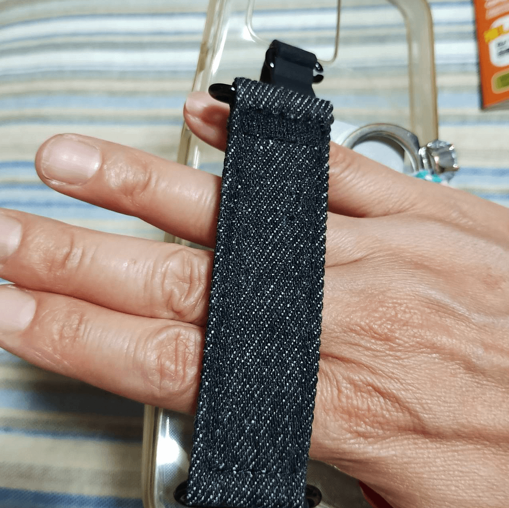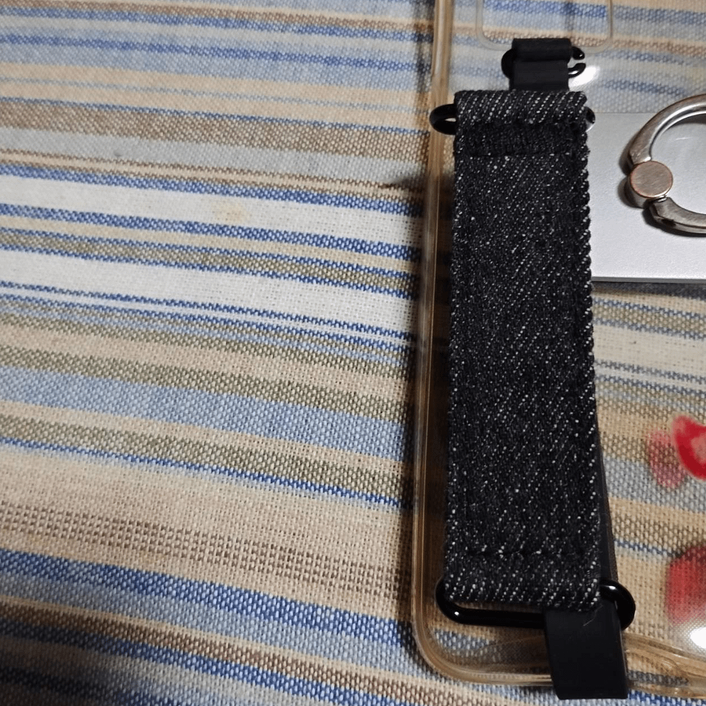 Der Teil, an dem Ihre Hand aus Denim-Stoff besteht und nicht so eng ist wie ein normales Smartphone-Band, aber es liegt gut in Ihrer Hand und fällt nicht herunter, selbst wenn Sie es kopfüber aufhängen und halten, sodass Sie sich keine Sorgen machen müssen, dass Ihr Smartphone fallen gelassen wird Ich werde. Es scheint praktisch zu sein, weil Sie sich keine Sorgen machen müssen, dass es auf Ihr Gesicht fällt, wenn Sie vor dem Schlafengehen mit dem Gesicht nach unten auf Ihr Smartphone schauen.