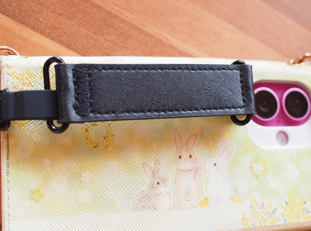 Patentierte Technologie, die "1. Gummi zum Verbinden mit der Smartphone-Hülle" und "2. Band zum Halten der Hand" strukturell trennt,