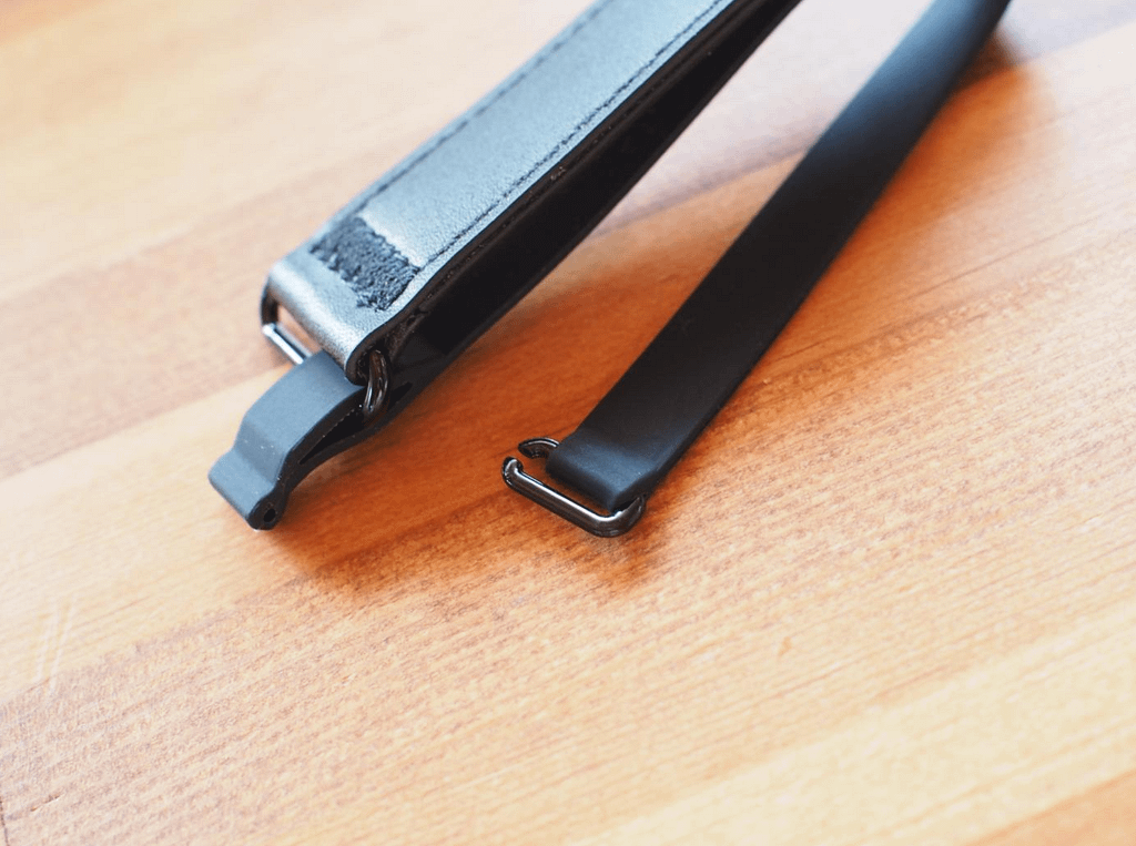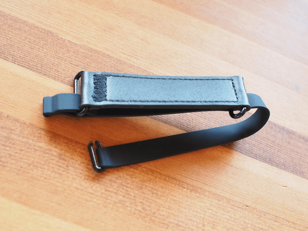 Die beiden O-Ringe, die das Gummiband und das Lederband verbinden, lassen sich nach links und rechts verschieben und passen bequem in die linke oder rechte Hand